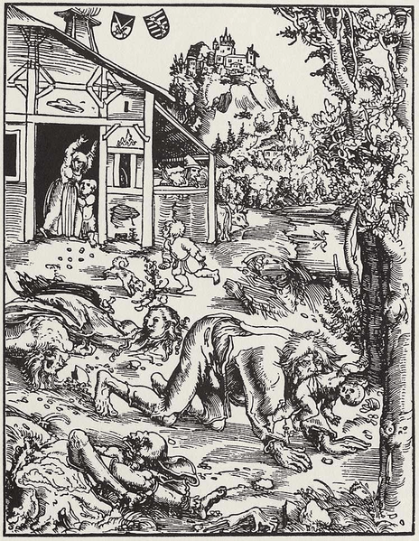A German woodcut dating to 1512 showing a werewolf, by Lucas Cranach the Elder
