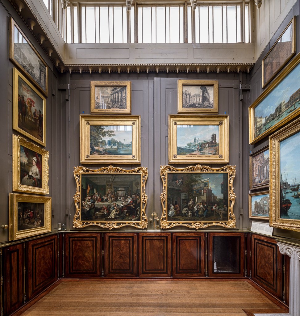A view of the Picture Room – you can see the hinges of the wooden panels which open up to reveal more paintings. Sir John Soane’s Museum.