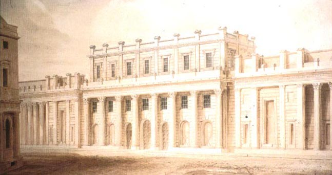 A 19th-century print of Soane’s newly designed Bank of England. WikiCommons.