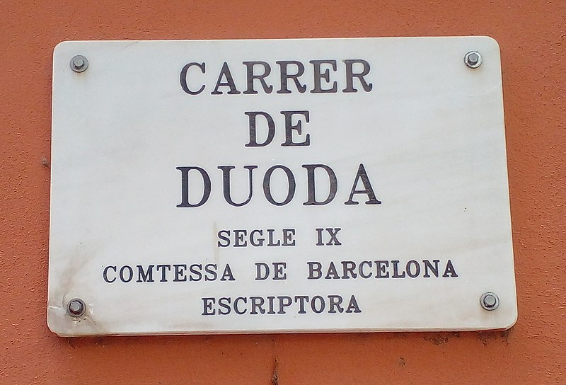 Though Dhuoda lived more than a millennium ago, her influence remains today because of her decision to put her life and knowledge on paper. In recent decades, after translations of her work became more widely available, scholarly interest in her has rocketed, with many books and articles about her. She has exerted particular influence in her husband’s city of Barcelona, where a street is named in her honour, as is the Duoda Women’s Research Centre at the University of Barcelona. Whether she lived long enough to see the fate of her family, or if she died in poverty and obscurity is not known – perhaps one day further research may uncover something, or perhaps her fate is lost to time. What is known, however, is that she reclaimed some power and autonomy by putting her thoughts and feelings in her own words, words which have survived 1,200 years to us today, privileged enough to read them.