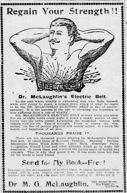 However, doctors quickly turned on these products. Fed up with companies trying to profit off of medical treatments, they criticised products that had all the advertisement without any of the actual treatment. One review of an electric belt for both men and women sold by Mr C B Harness’ company in London was scathing, with Dr William Langran writing to The Electrical Review in 1888 that the circuit of metal discs in the belt appeared to be incomplete, and there were no signs of an electric current when placed on skin. He highlighted the problem with misinformation: “These belts… cause a highly imaginative portion of the public to believe in their efficacy as curative agents”.