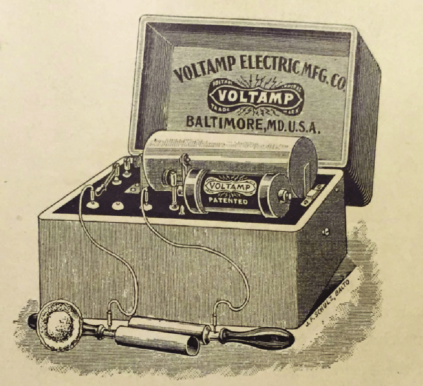 By the late 19th century, notions of bringing the dead back to life had faded somewhat, but there was still plenty of talk about how electricity could help human ailments. This led to a booming new trade in electric treatments. Though initially only offered by doctors, by the 1870s companies started selling batteries to the public so they could continue these treatments at home. These batteries came in a wooden box, and allowed people to shock themselves with a low-level current, but by the end of the century these portable cures were bemoaned by some doctors, who complained that only the medically trained should be conducting these treatments and that people were endangering their health by using them untrained and purchased from charlatans rather than under doctor supervision.